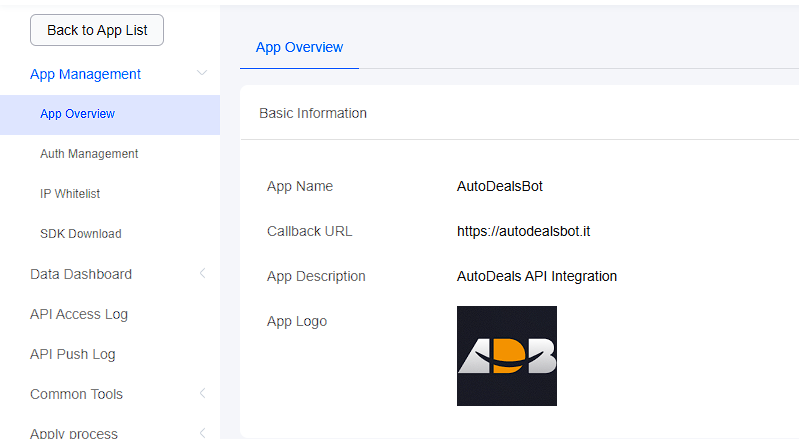 - App Key — la clave numérica para introducir en el bot